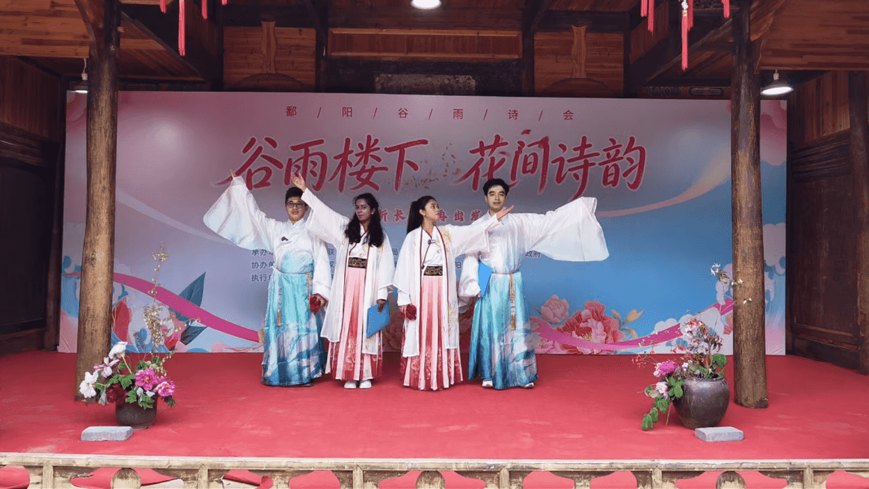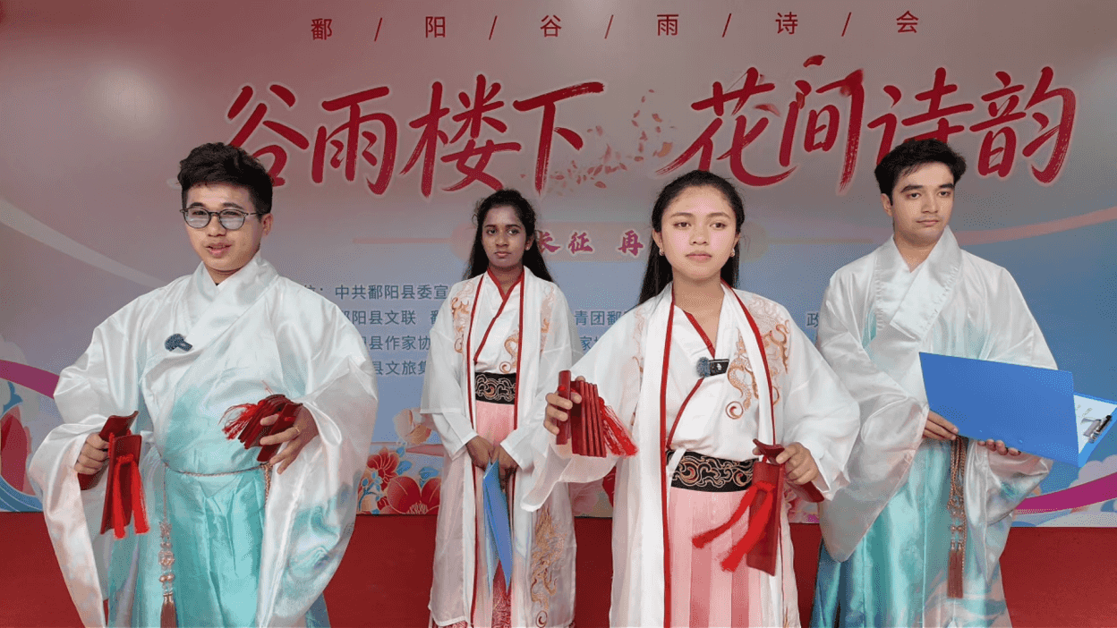 Endowed with beautiful lake-and-city scenery, profound cultural heritage and strong development vitality, Poyang serves as an important window into experiencing the natural features and rural development of Jiangxi. The themed activity of the Guyu Poetry Festival kicked off smoothly, during which international students recited classic Chinese poems in both Chinese and English. Their standard and articulate Chinese recitations, combined with fluent and accurate English interpretations, complemented each other remarkably. Wang Jiesi, a Myanmar student from Jiangxi Normal University, and Gan Yue, a Madagascar student from the same university, integrated lively kuaiban (clapper talk) performances into their program, vividly demonstrating the beauty of peonies in a more dynamic manner. The audience responded with warm applause and commented, “The poetry recitation by the international students is excellent! Foreigners can also perform kuaiban with such high standards!”