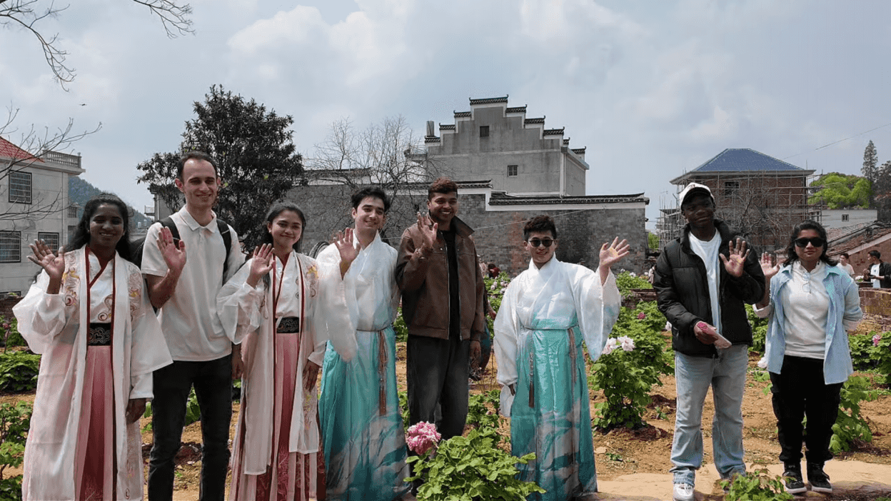 Recently, international students from seven countries, including Sri Lanka, Madagascar, Bangladesh, Uzbekistan, Iran and so forth, paid a visit to Poyang County, Shangrao City, Jiangxi Province, to participate in the international cultural exchange activity themed “Poetic Charm Among Flowers at Guyu Attic” under the “Study in Jiangxi” program. This marked the second occasion that the Jiangxi Colleges Alliance for International Communication has organized international students to participate in the Guyu Poetry Festival. Wandering along the lakesides and rural areas, reciting classic Chinese poems, admiring century-old peonies and inspecting the new outlook of rural areas, the students were fully immersed in the poetic atmosphere and natural scenery, gaining an in-depth experience of the profound heritage of fine traditional Chinese culture and closely observing the achievements of rural revitalization in Jiangxi, thus embarking on an exchange journey featuring both cultural charm and rural sentiments.