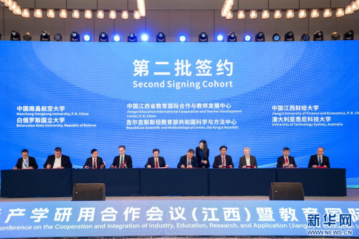 开幕式上举行了三轮重磅签约仪式,涵盖合作办学与“伴企出海”两大板块。江西省教育厅与中国教育国际交流协会签署合作协议;江西省教育国际合作与教师发展中心与吉尔吉斯斯坦教育部共和国科学与方法中心达成合作;江西财经大学与悉尼科技大学、南昌航空大学与白俄罗斯国立大学、东华理工大学与匈牙利德布勒森大学等一批中外高校合作项目同步落地。此外,江西多所高校还与江西国际经济技术合作有限公司、江西省盐业集团、华为技术有限公司、江西中煤集团等领军企业签署“伴企出海”协议,推动教育链、人才链与产业链深度融合。